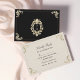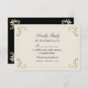 Luxuriös svart och guld OSA kort med ornat baroque-blommor och elegant guld monogram på baksidan. Den klassiska svarta designen är sofistikerad, skapar den perfekt för ett formellt, royal eller kvällstema i bröllop. Gäster kan enkelt bekräfta närvaro och måltider. Koordinerar sömlöst med matchande inbjudan till svartvitt och guld.