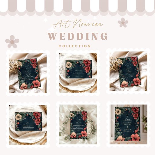 Fira din bröllop med ett moody, romantiskt Victoriangotskt stil. Med blommigtar för lush-mörk, antika toner och vintage-inspirerade detaljer frammanar den här designen elegansen i en gammal epok med en dramatisk vändning. Perfekt för fallceremonier, Halloween bröllop eller par som dras till art nouveau, historisk charm och djup känslomässig estetik.