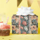 Ett rik, vintage-inspirerat blommönster med omväxlande paneler av lodrät med två separata men kompletterande motiv. En panel har djupa koltoner med koral- och elfenbensponenter, accentuerade av teal och jordfin löv, vilket ger upphov till en moody elegans. Den andra sidan har en varm gräddbakgrund som är försedd med brända blommigtar och löv av mörk, som påminner om klassiska, handmålade botaniska avtryck. Ornate dekorative gräns in muted red, blue och guld lägger till en extra lagrar av sofistikering. Underbar till jul eller födelsedagar.