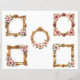 Elevate your crafting with this exquisite sheet of baroque frame cutouts, each one designed to feel like a tiny treasure pulled from an antique gallery wall. Ornate gold‑gilded frames shimmer with old‑world opulence, their scrolling edges and carved flourishes rendered in rich, dimensional detail. Nestled within and around each frame are delicate floral embellishments and airy botanical accents that add a whisper of romance to every piece.