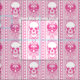 Den här gotiska designen har en ornaterad strimmig mönster av barockiska prydnadsämnen, döskallar och hjärtan i ett sött rosa och vitt färg.