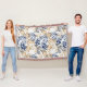 Elegant vintage vector pattern featuring flowing baroque-style floral scrolls in navy blue and gold on a clean white background, creating a classic, luxurious, and timeless ornamental design.