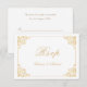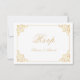 OSA kort för inbjudan till islamisk muslimsk Nikah White Wedding. Vintagens baroque-rulla i guld färg med manusjografi på framsidan. Kortets framsida och baksida kan redigeras. Du kan ändra all information, ändra kortet färg och även ändra typsnitt. Besök Elegantens Vintage Baroque-samling för att hitta alla produkter som matchar den här.