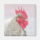 Vår magnet har en närbild av en Barred Plymouth Sten Chicken. De här kycklingarna har svart och vitt barring. De är duktiga och lätta att hantera, perfekt till ditt kök! Vår kyckling har en röd komb och gult-näcka.