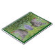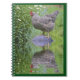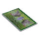 Den här bärbara datorn har en barred sten när den står på ovansidan av en svamp i träets trädgårdsblommor och reflexioner.