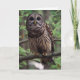 En vacker vuxen barred uggla på en träd-arm. Foto av Brian Kraus.