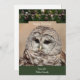 Det här är ett julkort med en bild av ett Barred Uggla. Den här bilden togs av Debbie Quick från Debs Kreativ Bilder: www.debscreativeimages.com