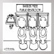Ett vilrum utan väggar mellan tre toaletter, "Barrier Free Public Restroom".