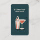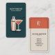 Ett vintage-affärskort för bartender, pub, mixolog, party-barkeeper. Det finns en illustration av en cocktail-skakapparat och ett martinistiskt glas i färg.