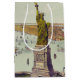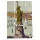 Vintageillustration av Den stora Bartholdi-statyn, Friheten som belyser världen, ursprungligen publicerad av Currier & Ives 1885. Currier & Ives gav ut 12 olika utgåvor av trycket. Frihetsgudinnan var den högsta strukturen i New York City när den invigdes den 28 oktober 1886. Statyn är 148 fot hög och står på en stensockel som är 150 fot hög och når en total höjd på 298 fot. Den skapades av Frederic Auguste Bartholdi och gavs till det amerikanska folket av Frankrikes medborgare. Frankrike beundrade Amerika för dess framgång i att etablera en demokratisk regering, avskaffa slaveriet och för landets fortsatta strävan efter frihet. Vyn visar Friheten uppförd på Bedloe's Island, New Yorks hamn med fartyg, Brooklyn