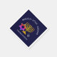 Snyggt, elegant HANUKKAH BLESSINGS Pappra Napkins. Design visar en MENORAH-färgad i guld med flerfärgad STAR AV DAVID och silver grått DREIDEL. I toppen finns en böjd text som säger BARUCH ATAH, ADONAI (välsignad är du, O Gud) och under texten står HANUKKAH BLESSINGS. ALL TEXT ÄR-ANPASSADE, så att du kan anpassa dig efter ditt eget val av hälsning och text. Bakgrundsfärgen är midnattblå. Andra versioner finns tillgängliga i HANUKKAH Collection by Berean Design.