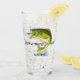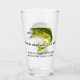 En bas- fisk på ett drinkexponeringsglas med citationstecken.