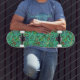 Denna skateboard presenterar en collage av bas- och forellfisken.