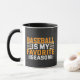Alla som kärlek baseball kommer att kärlek den här basebollplanen, mugg, med guld och vitt som läser Baseball är min favoritsäsong!