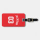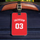 Show your team pride with this personalized baseball bag tag customized with your last name and number.