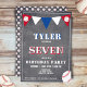 Baskan Boll Chalkboard Sports Barns födelsedag bjuder in. Cute baseball födelsedagsfest Card. Utformningen har baseball bollar och buntar flaggor i rött, vitt och blått färg mot en kritbakgrund. Anpassa den här födelsedagen inbjudan med ett barns namn, ålder och anpassa alla data på inbjudan. Underbar som födelsedagsfest inbjudan för en pojke som kärlek baseboll och sport.