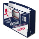 Modern Baseball Boll-spelare Thédold Birthday Gift Bag. Fira i stil med den här eleganta basebolldesignen! Med ett marinblått, rött och vitt färg-schema, fet stil och realistisk basebollgrafik är den här sportetiska designen perfekt för vilken baseboll som helst fläkt. I väskan visas silhuettes, 3D baseball och rand. Oavsett om det gäller ett barns party eller en vuxen baseboll älskare, så är denna premie- och anpassade-design ett hem springa för varje födelsedagsfirande!