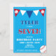 Baskien Boll Sports Barns födelsedag-inbjudan. Cute baseball födelsedagsfest inbjudan. Utformningen har baseball bollar och buntar flaggor i rött, vitt och blått färg på en ljusblå bakgrund. Underbar som födelsedagsfest inbjudan för en pojke som kärlek baseboll och sport.