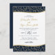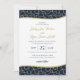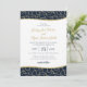 Blåblått och guld bröllopsinbjudan till eleganten med utbytbar bakgrund färg och redigerbar text.