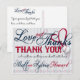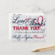 BASEBALL BRÖLLOP TACK POSTCARD 2b-*Det här tackkortet är endast anpassat för en SPECIFIK KLIENT. Den här är till för dem. Ett annat lämnande namn av kommer att finnas tillgängligt. Om designen: Bakgrunden är täckt med tunt blått och vitt lodrät rand. Dekorativ glastext överst står: Kärlek och tack. Sedan är den dekorativa röda texten som lyder: TACK! i brev. En anteckning i svart kursiv anpassningsbar går före namnteckning. Dekorativt glas namnteckning med bruden och rummen namn. Ett litet vågrät gräns av små basbollar springa över grund. Postkortets baksida har också förskönande egenskaper. Glastexten Kärlek och tack, glastexten i par namn och lodräts baseballavskiljare. Den här designen visas i blått och även i rött. Glöm inte att anpassa anteckningarna på framsidan och baksidan i din egen text. Redigera textområdena eller ta bort/radera dem för ett tomt kort.