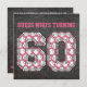 Om du vill ha denna inbjudan med ett annat nummer på framsidan eller i ett annat färg, kontakta oss genom firandet av Bazaar-affären och vi skulle vara lycklig för att skapa den åt dig. Gratulerar till att basebollstjärnan eller baseball fläkt fyller 60 år med den här moderna inbjudan som innehåller en chalkboard-design. Inbjudans framsida har ett stort rosa 60 med basebollar inuti, med texten "Gissa vem som vänder". Baksidan av inbjudan har samma chalkboard-design med en subtil mönster av basebollar med anpassade text för dina party-detaljer när det gäller att samordna rosa och vit.