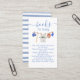 Little Slugger Clothesline Baby Shower bokar för baby-kort. Har vattenfärgad basebollarsey, hjälm, sporthätta, fladdermus, baseboll och handskar på klotelin i muterat beige, tan och blått färg. Alla formuleringar kan ändras. Om du vill göra fler ändringar går du till Anpassa den här mallen. På grund kan du se "Vill du anpassa designen ännu mer? Klicka på EDIT med Design verktyg. Därifrån kan du ändra en del av typsnitt och en del färg, flytta sak runt eller ta bort det du behöver.