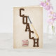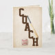 Brun COACH-text med baseboll och fladdermus om texturerad bakgrund för Coach-tack. Namn på baseboll är redigerbart.
