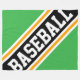 Den här sportsliga designen har en atletisk BASEBALL-text inuti markerad diagonal svart, vit och guldfärgad tävla rand för gult mot ljus bakgrund av grönt. Den första och sista brev av ord "baseball" springa utanför kant med en dynamisk banderoffekt.