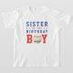 Röda vita och blå baseboll "syster till födelsedagspojken" födelsedagsfest skjorta för ett syskon. Anpassa titeln till den som är gift med barnet: bror, kusin osv. Underbar för sportfantaster och spelare.
