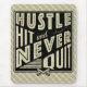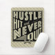 Baseball Hustle Slå och sluta aldrig Musmatta Mousepad. Texten lyder: Hustle, Slå och Avslutar aldrig, med en korsad baseboll och en fladdermöss.