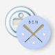 Med korsade fladdermöss och basebollar på blå bakgrund är utformningen av den här runda flaska-öppnaren perfekt för vilken fläkt som helst av baseboll. Lägg till initialer eller kort för att anpassa texten.
