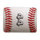 Ett makrofoto av en helt ny Baseball med rött stygn. Perfektens gåva till basebollbollens freak eller sportfanatiska.