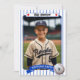 Anpassa dessa söta baseballfödelsedagsinbjudningar med spelarens favoritfoto. Basbollkortsdesignen har en bakgrund i streck och har röda stjärnor och en baseboll med MVP-åldern på födelsedagen. All text kan ändras för att passa dina behov.