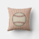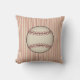 En baseboll i vintage stil dekorerar denna röda och krämstripade kudde. Designen kommer från originalteckningen.