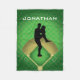 Baseball Pitcher Design Fleece Blanket med silhuetten från en pitcher mot en diamantbakgrund med anpassadets anpassning.