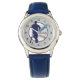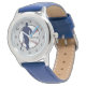 Det här är en attraktiv sportklocka för pojken som kärlek baseball. Den har en blå basebollspelare och en fladdermus-silhuett mot en vit boll-bild som är komplett med röd sömnad. Bilden placeras på en lätt grått-bakgrund. Mörkens nummer gör att klockan är lätt att läsa. *Den här designen användor bild © Graphics Factory.com*