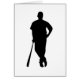 En enkel silhuettbild i svart och vitt av en basebollspelare i fladdermus. Han står och lutar på en baseboll fladdermus. Lägg till ett personlig-meddelande till den här designen eller ändra färg i bakgrunden.