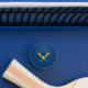 Basebollikonen med två fladdermus och ett boll över en blå sköld. Anpassningsbar på baksidan.