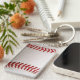 Ett makrofoto av en helt ny Baseball med rött stygn. Perfektens gåva till basebollbollens freak eller sportfanatiska.