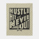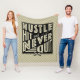 Texten lyder: Hustle, Slå och Avslutar aldrig, med en korsad baseboll och en fladdermöss. Mjuk loppfilt, tvättbar maskin.