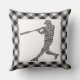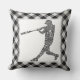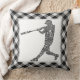 Baseball Softball Player Calligram Dekorativ kudde. Black gingham-bakgrund. Finns i storlekar på 16 tum x 16 tum eller 20 tum x 20 tum och i bomull eller polyester. Använda "storlek"-menyn på högernas sida om skärm för att byta kuddar.