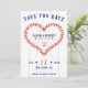 Röd vit och blå baseboll/bröllop spara datum med streck och hjärtstygn. Anpassa den med din händelseinformation. Underbar för sportfantaster.