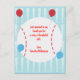 Basbollkortet i roligt är perfekt att skicka ett tack till dina gäster för att de kommit. Postkortet har en baseboll fladdermus mönster i bakgrunden och ballonger i förgrunden.