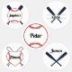 Basebollens temauppsättning med klistermärken. Fem olika Basebollkonstruktioner. Anpassa genom att lägga till barnets namn. Etiketter är vattentäta och kan användas på allt från kläder, bokar, rätter osv. Håll dig till ditt barns ägodelar.