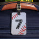 Personligbagagemärkren med läderbaseball med Jersey numrerar 7.