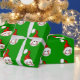 Baseball som ha på sig en santa hatt och en leendesportfantast som slår in papper