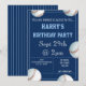 Baseboll tema festinbjudan, redigerbar så att du kan ändra hälsningen, namnet, datum/tid, plats och RSVP-information med randig baksida, tillgänglig i andra färger.