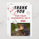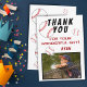 Baseboll födelsedags tackkort med foto, tackmeddelande, namn och basebollar. Kortet är i en vit, röd och svart färgskala. På baksidan av kortet finns basebollar. Foto tackkort - lägg till ditt barns foto i mallen. Anpassa kortet med namn och din text. Perfekt för barn som älskar baseboll och sport.