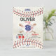 Baseboll inbjudan, årets rookie födelsedagsinbjudan, sport slammer bollspel. Pojke födelsedagsfest. Marinblå röd.