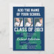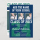 En enkel elegant design i blått och grönt för en examensfest. Lägg enkelt till dina egna foton och anpassa med ditt uniform / tröjnummer. Perfekt för skolans idrottare. Om du inte hittar exakt vad du vill ha, vänligen kontakta oss för anpassning (till exempel i din skolas färger!).